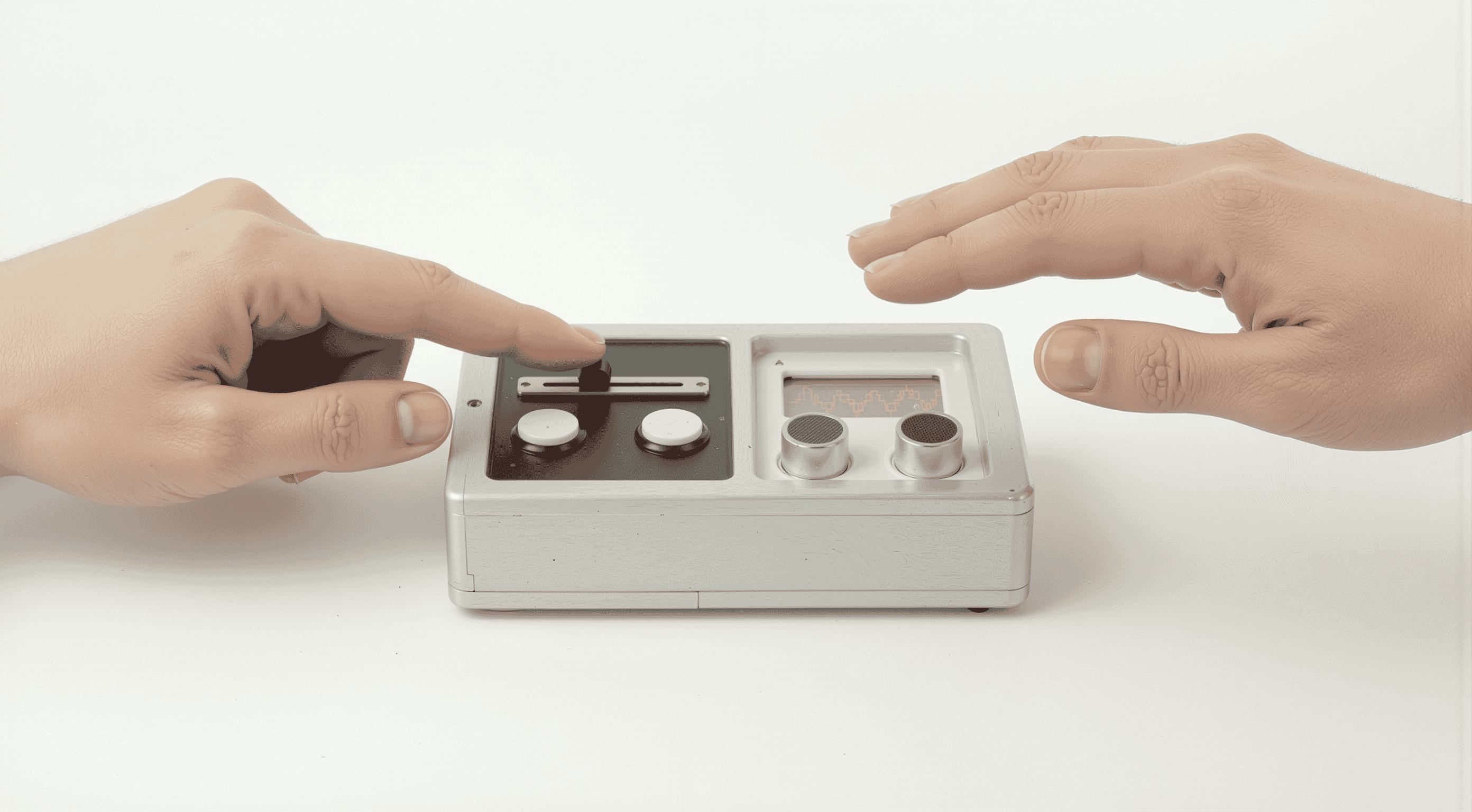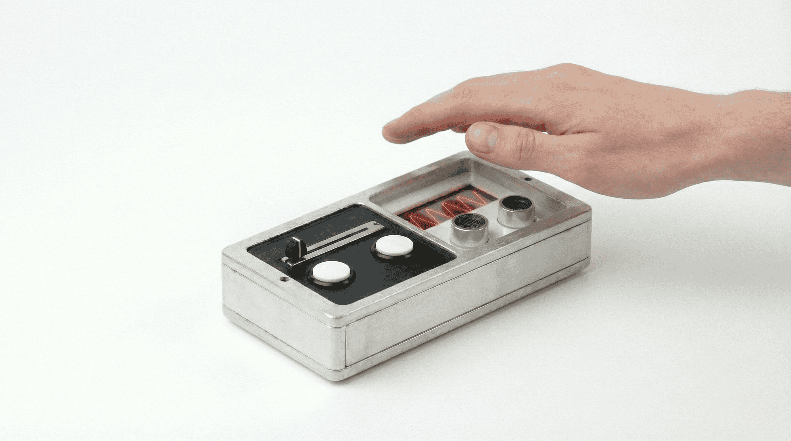 Following the functional validation, I transitioned to explore the potential form factor beyond the breadboard. I generated 3D renders that focused on housing the sensor and controls in a brushed aluminum enclosure, prioritizing a clean, minimal aesthetic that maintains the ergonomic relationship between the user's hand and inputs.